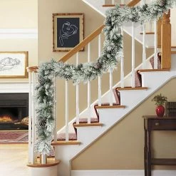 Puleo International 9-ft. Artificial Flocked Berkshire Spruce & Pine Cones Garland
